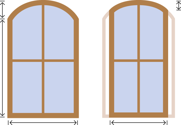 Achtung: Wenn Sie die Höhe des Elementes ebenfalls ändern wollen, würde sich dies auf den Radius des Kreisbogens auswirken. In diesem Fall benutzen Sie bitte unseren Stichbogenrechner für die Blendrahmenberechnung.